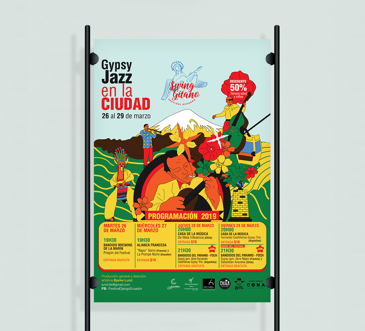 En este proyecto el desafío fue crear una marca como imagen representativa del "Swing Gitano Festival Ecuador" de Gypsy Jazz y también se diseñó el afiche promocional.
